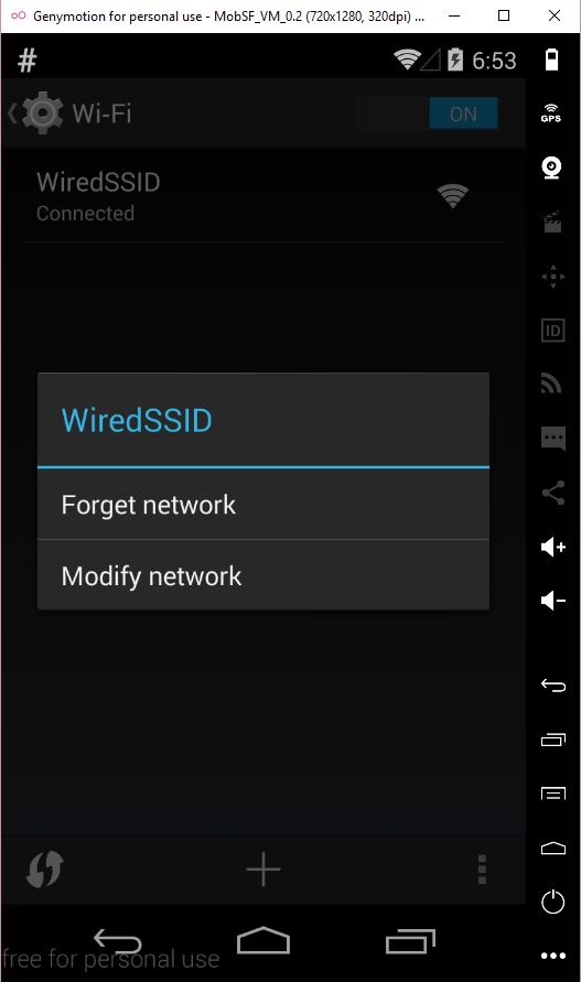 Ayarlara ( Settings) e girerek daha sonra Wi-Fi ye tıklayarak WiredSSID nin üzerine basılı tutarak Modify network diyerek Proxy belirliyoruz. Burada IP adresi test yaptığınız makinenin IPsidir kendi ana makineniz ya da yukarıda bahsettiğim makinelari indirdiyseniz onun IP adresidir.