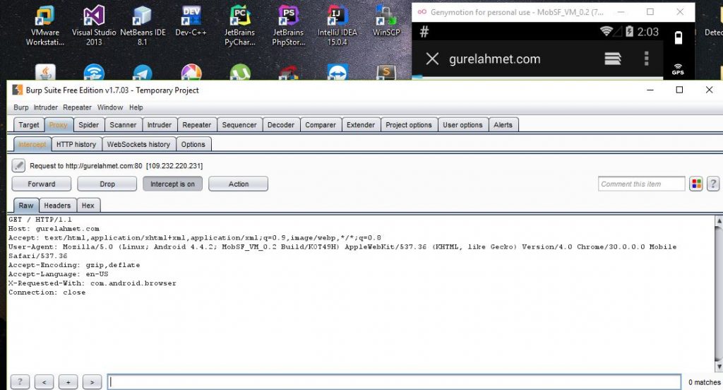Tabii ki efsane aracımız Burp Suite 🙂 Burp gelişmiş bir proxy yazılımıdır. Bunun dışında birçok teste yardımcı olmakta ve imkan tanımaktadır. Web Testlerinin olmazsa olmazı Burp Mobil testlerimizde de o kadar önemli. Şimdi Burp Suite Emulatorümüzden bağlanmayı bakalım beraber.