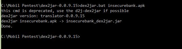 Adından da anlaşılacağı üzere dex dosyalarını jar dosyalarına çevirmektedir. Resimde görüldüğü üzere apk dosyamızı jar haline getirdik.