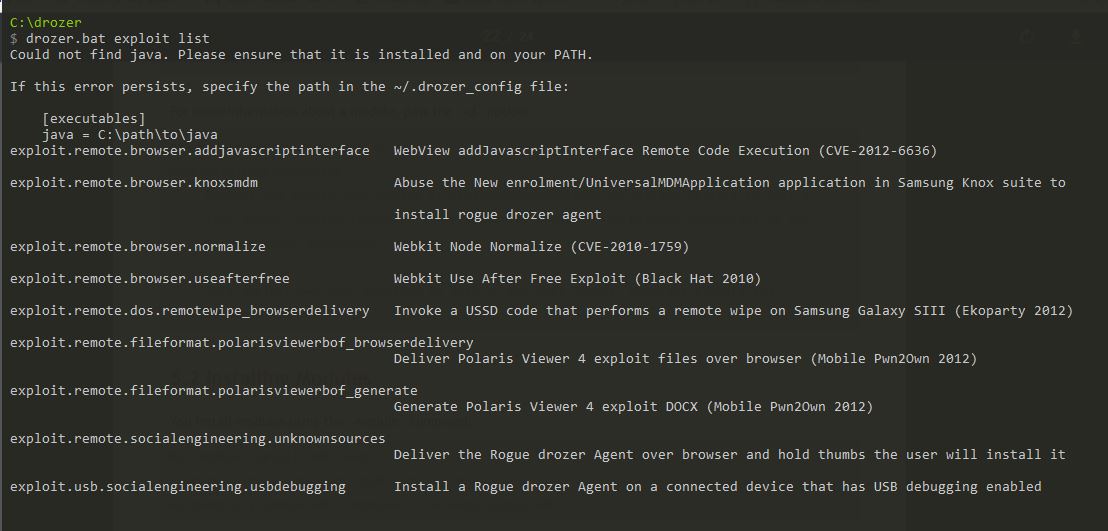 Gördüğünüz gibi drozer çok gelişmiş bir araç. Birçok modülü ve komutu var. Bunların tamamına buraya tıklayarak ulaşabilirsiniz.