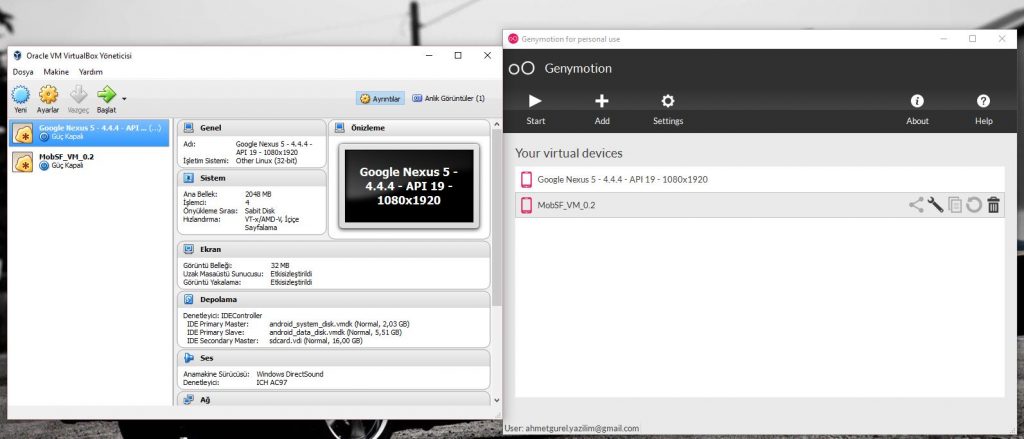 Bu araçları anlatırken kendim farklı platformlar ve işletim sistemleri kullanacağım sizde kendinize istediğiniz gibi bir test ortamı kurabilirsiniz. İster ana makineniz üzerine bu araçları kurarsınız isterseniz sanal bir cihaz üzerine kurarsınız karar sizin. Fakat bunun dışında testi gerçek bir cihaz ile yapmayacaksanız Android Emulator kurmalısınız. Ben Genymotion kullanacağım. Genymotion üzerine istediğiniz bir cihaz kurup konfigürasyonunu yapabilirsiniz. Fakat başlangıç için benim size önerim MobSF VM 0.3 ova dosyası. MobSF VM dosyasını indirip VirtualBox ile açarak rootlu hazır bir test cihazı elde edebilirsiniz. Bu yazıda ben de onu kullanacağım.