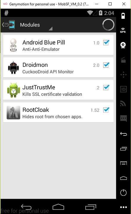 MobSF VM i kullanmamızdaki en büyük rahatlık hazır bir test ortamı sağlamasıydı. Rootlu bir cihaz olması içinde Xposed Modüllerinin kurulu gelmesi işimizi hızlandırıyor.